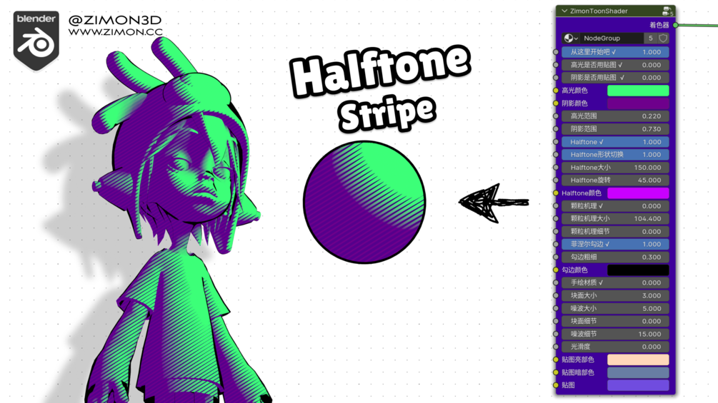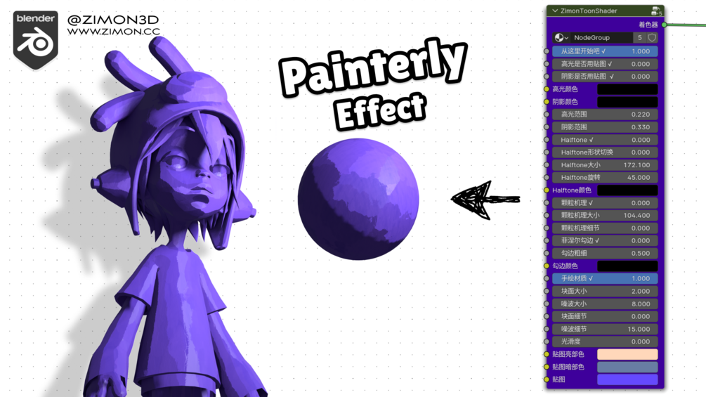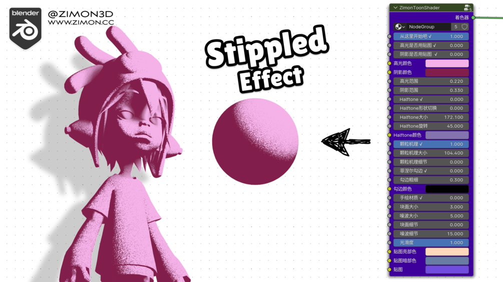 Super easy to use, with flexible parameter adjustments, allowing you to quickly add painterly, Halftone, grainy, or stippled effects to your models.